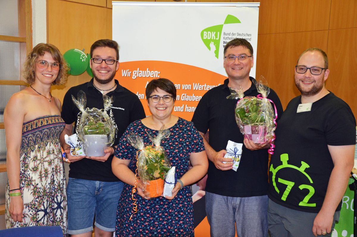Ein diözesanes Jugendforum als Gesprächsplattform für junge Menschen hat der Bund der Deutschen Katholischen Jugend (BDKJ) im Bistum Würzburg bei seiner Diözesanversammlung auf dem Volkersberg von Freitag bis Sonntag, 28. bis 30. Juni, als Aktion für das Jahr 2020 beschlossen. Junge Leute aus verschiedenen Regionen, Verbänden, Gruppierungen und unterschiedlichen Bereichen der Gesellschaft sollen über ihr Leben und ihren Glauben ins Gespräch kommen, untereinander und mit Verantwortungsträgern aus Kirche und Gesellschaft, schreibt der BDKJ in einer Pressemitteilung. Die 40 Delegierten beschlossen zudem eine Fahrt für junge Erwachsene in das politische Berlin sowie eine neue Diözesan- und Geschäftsordnung. Die hauptamtlichen Vorsitzenden Christina Lömmer (Hammelburg) und Sebastian Dietz (Karbach) sowie geistlicher Leiter Pastoralreferent Bernhard Lutz (Hammelburg) wurden bei den Wahlen einstimmig in ihren Ämtern bestätigt.