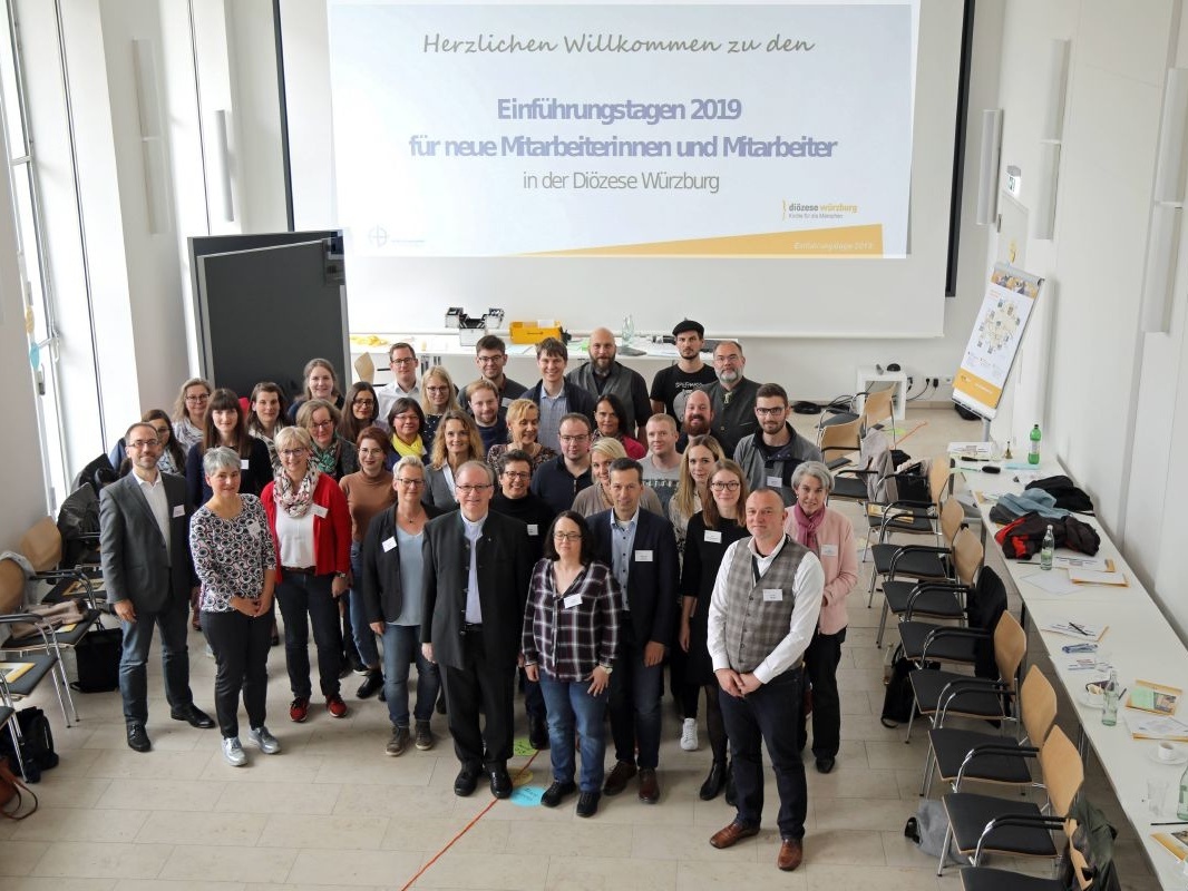 Mehr als 50 Frauen und Männer haben seit Oktober 2018 ihren Dienst im Bistum Würzburg angetreten. 35 von ihnen nahmen an den Einführungstagen am Donnerstag und Freitag, 17. und 18. Oktober, im Burkardushaus in Würzburg teil und erhielten einen Einblick in die Organisation der Bistumsverwaltung. Die Teilnehmer kamen aus unterschiedlichen Berufsgruppen und Tätigkeitsfeldern, etwa aus dem Bischöflichen Ordinariat, den Tagungshäusern, der Bildungsarbeit, aus der Berufsgruppe der Pastoralassistenten oder aus den Pfarrbüros. Erstmals waren auch zwei Priesteramtskandidaten unter den Teilnehmern. Die Veranstaltung stand unter der Überschrift „Wie – wo – wer – was – warum? Von Archiv bis Zusatzversorgung“. Auf dem Programm standen unter anderem Organisation und Aufbau des Bistums, Angebote zur Vereinbarkeit von Beruf und Familie, Fortbildung und Supervision, Rechtsgrundlagen des Beschäftigungsverhältnisses sowie der Besuch von ausgewählten Dienststellen.