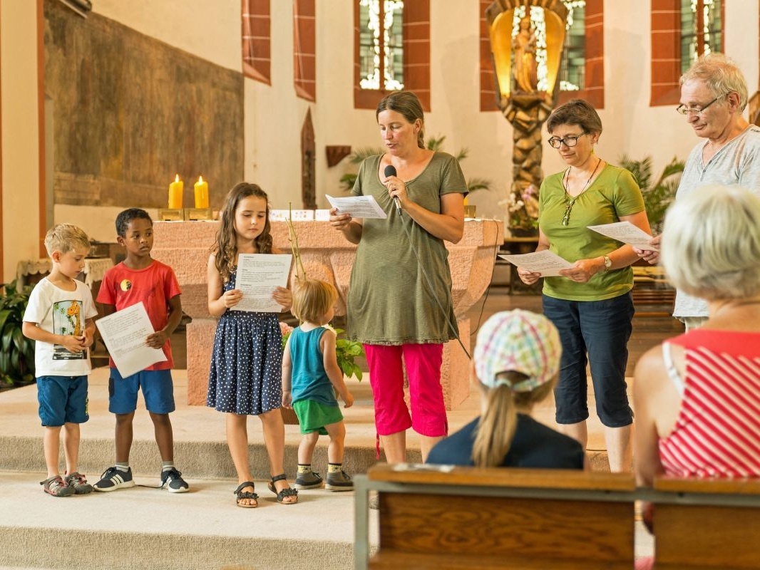 Die Veranstaltung am Gedenktag der Großeltern Jesu, Anna und Joachim, stand unter dem Motto „Komm, wir finden einen Schatz“. Nach einem Eröffnungsimpuls in der Wallfahrtskirche „Maria im Grünen Tal“ wurden Workshops angeboten wie Tanzen, Schatzsuche, Wasserspiele oder Schatzkästlein basteln. „Es ging uns um die Förderung des gemeinsamen Tuns und Erlebens und darum, sich miteinander auf die Suche nach den wichtigen Schätzen im Leben zu machen“, sagte Volkmar Franz, Regionalreferent des Katholischen Senioren-Forums aus Aschaffenburg. Pfarrer Albin Krämer feierte mit den Teilnehmern zum Abschluss einen Gottesdienst in der Wallfahrtskirche. Nach dem Evangelium vom „Schatz im Acker“ brachten einige Großeltern und Enkel ihre Schatzkästchen zum Altar. Darin befanden sich große Münzen, auf denen sie wichtige Schätze aus dem persönlichen Leben aufgeschrieben hatten. Oft genannt wurden Familie und Freunde sowie, dass Großeltern und Enkelkinder füreinander Schätze sind. Großeltern und Enkel trugen gemeinsam Fürbitten und Gebete passend zum Thema Schatzsuche vor. „Wir freuen uns, mit diesem Fest einen kleinen Beitrag leisten zu können für ein gutes Miteinander von Jung und Alt“, sagte Pastoralreferentin Barbara Stockmann.