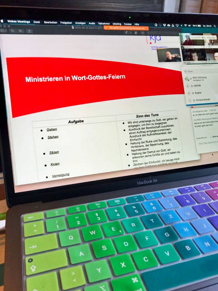So hat die Kirchliche Jugendarbeit Diözese Würzburg im Aufrag des Liturgiereferates des Bistums in den vergangenen Wochen ca. 60 Gottesdienstbeauftragte geschult. In insgesamt vier Videokonferenzen sammelten sich Menschen, die in ihren Gemeinden Wort-Gottes-Feiern und andere Gottesdienstformen leiten, um den Einsatz von Ministrantinnen und Ministranten zu reflektieren und weitere Gestaltungsmöglichkeiten kennenzulernen.