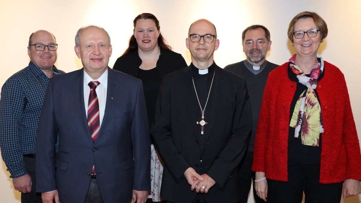 Würzburg (POW) Zu einem ersten Austausch haben sich am Donnerstag, 16. Januar, Teilnehmer am Synodalen Weg, die aus dem Bistum Würzburg kommen, im Würzburger Bischofshaus getroffen. An der Synodalversammlung nehmen teil: Bischof Dr. Franz Jung (Deutsche Bischofskonferenz), Weihbischof Ulrich Boom (Deutsche Bischofskonferenz), Michaela Brönner (Kolpingjugend, Kontingent der U-30-Jährigen), Susanne Bühl (Diözesanrat der Katholiken im Bistum Würzburg), Dekan Albin Krämer (Diözesane Priesterräte), Pastoralreferent Marcus Schuck (Berufsverband der PastoralreferentInnen), Pfarrer Dr. Matthias Leineweber (Gemeinschaft Sant‘Egidio) sowie Carolin Hasenauer (ehemalige Volontärin der katholischen Journalistenschule ifp).