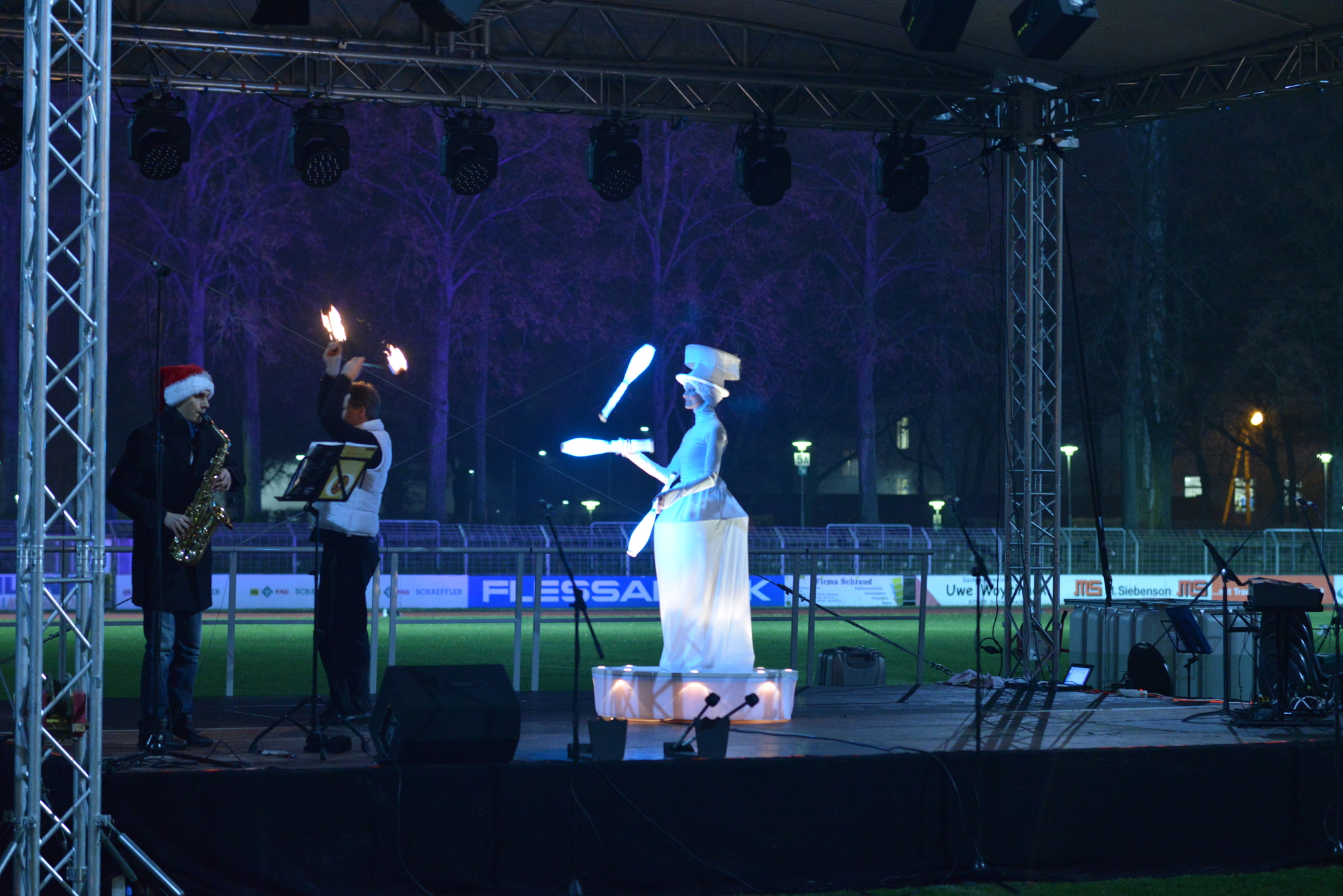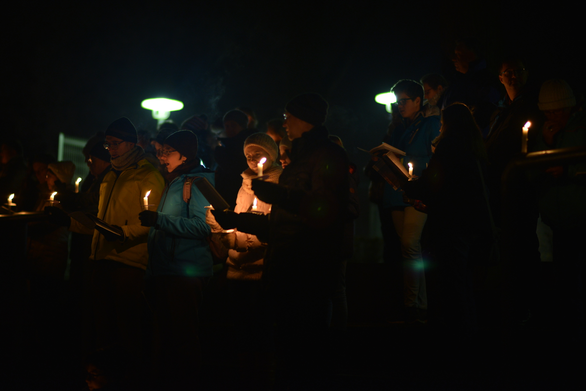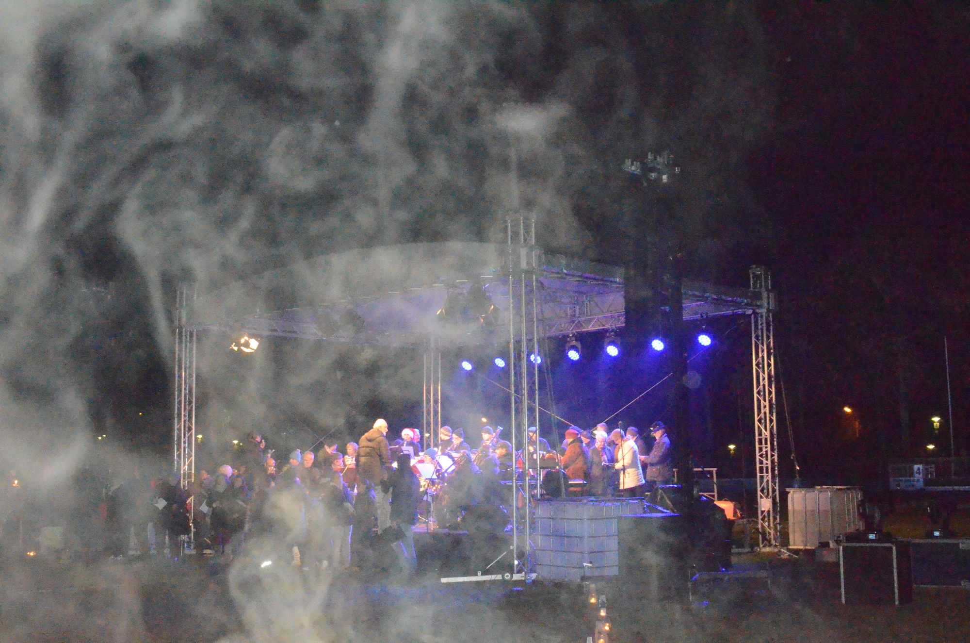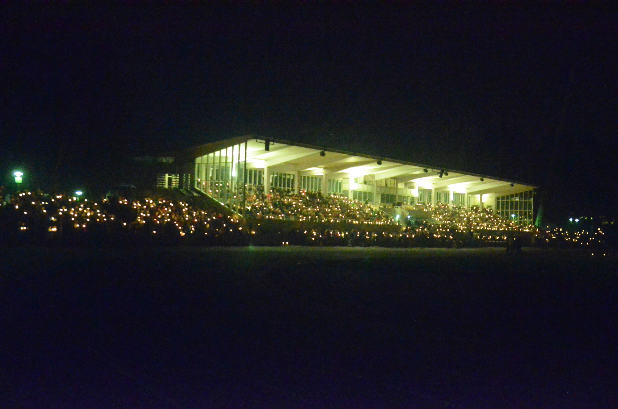 Ein toller Auftakt des ersten Weihnachtsliedersingens im Stadion: Gute Stimmung, ein friedliches Miteinander und ein Kerzenmeer über die Tribüne und die angrenzenden Ränge sorgten für Gänsehautstimmung - an einem Ort, wo sonst "die Schnüdel" (Fußballer des FC 05)l ihre Heimspiele austragen. Die Botschaft des Friedenslichtes aus Betlehem, von dessen Flamme die Kerzen der Beteiligten angezündet wurden, kam an. Schon während des ersten Liedes mit " Leise rieselt der Schnee" (der aber leider nicht rieselte), wurde auch deutlich: eine solche Veranstaltung hat Zukunft. Sie bewegt etwas. Wenn sich so viele auf den Weg machen: Chöre, Musiker, Singbegeisterte, Artisten, dann entsteht ein gemeinschaftliches Erlebnis für alle und jeden. Der gemeinsame Einsatz aller, der katholischen Citypastoral wie evangelischen Citykirche, aber auch der Jugendkirche kross und der Mithilfe des FC 05 bei der Bewirtung der Leute hat sich gelohnt. Ich sage nur: Danke und hoffentlich auf ein Neues im nächsten Jahr!